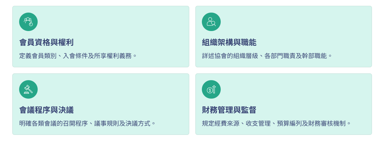 第 二 十 六 條 本 會 得 設 各 種 委 員 會 、 小 組 或 其 他 內 部 作 業 組 織 , 其 組 織 簡 則 經 理 事 會 通 過 後 施 行, 變 更 時 亦 同 。